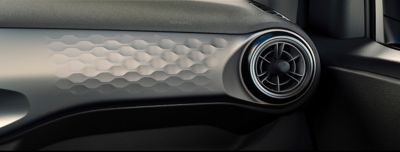Nowy, przestrzenny wzór o strukturze plastra miodu został umieszczony na desce rozdzielczej i panelach drzwi, nadając wnętrzu nowoczesny design. Owalne otwory wentylacyjne optycznie płynnie łączą deskę rozdzielczą z wykończeniem drzwi, dając poczucie większej przestrzeni. -