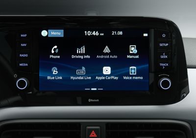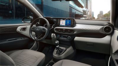 Hyundai i10 oferuje imponujący zestaw funkcji łączności, które czynią go liderem w swojej klasie. Wszystkie zaawansowane funkcje technologiczne są zintegrowane z nowym 8-calowym kolorowym ekranem dotykowym. System umożliwia także sterowanie za pomocą smartfona lub poleceń głosowych. Korzystaj z szerokiej gamy funkcji, dzięki którym jazda stanie się wygodniejsza i przyjemniejsza.
