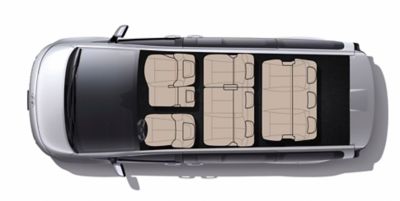 Elektrikli bagaj kapağı ve tamamen düz katlanabilen koltuklar gibi akıllı seçeneklerin yanı sıra STARIA Hibrit, bozuk paralar, kahve bardakları, içecek şişeleri, telefonlar, oyuncaklar gibi araç içinde sık kullanılan eşyalar için pek çok pratik saklama alanı sunuyor. Tavan bölmesinde, üst konsolun üzerinde, gösterge ekranının alt kısmında ve orta konsolun hem üst hem altında depolama alanları bulunuyor.